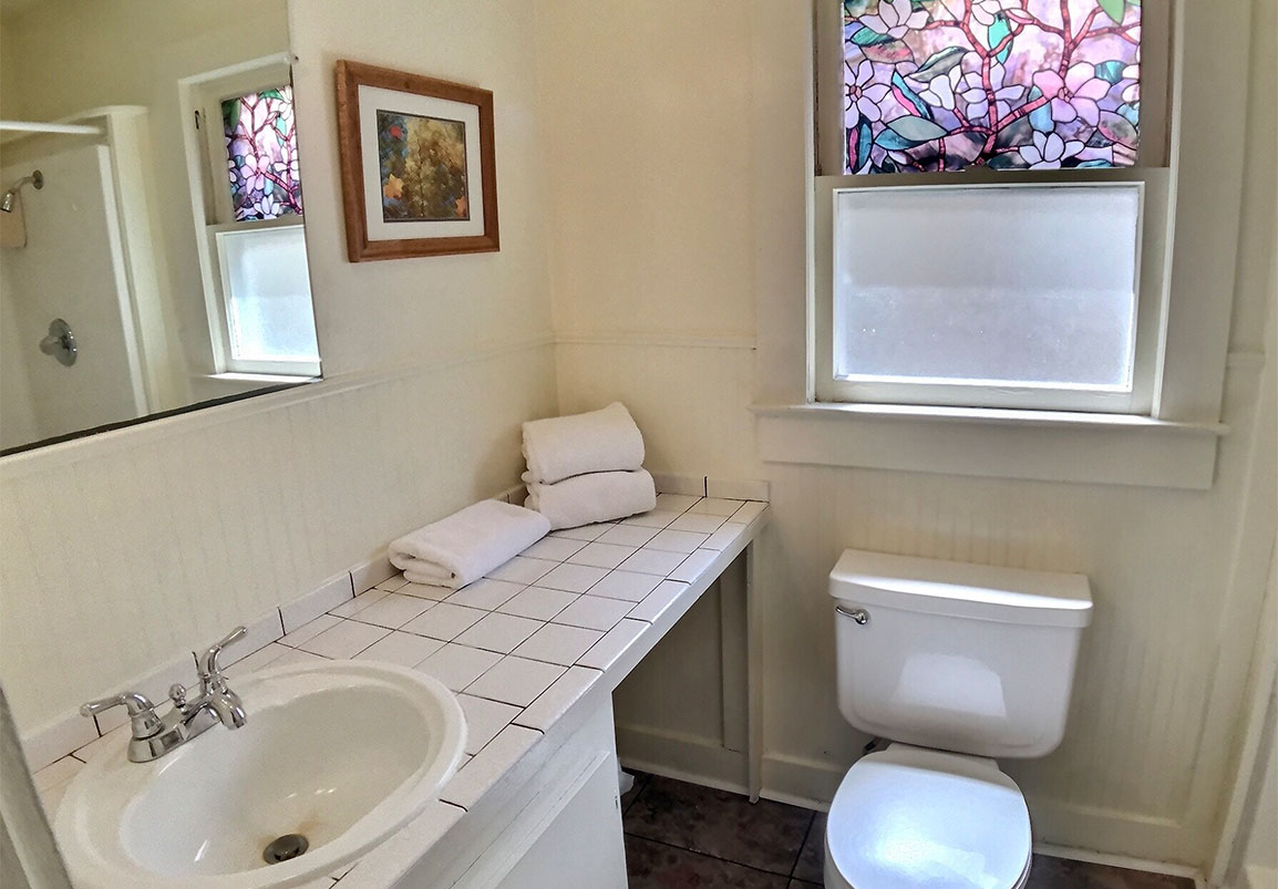 This type of construction of the rock cottage is also known as Giraffe houses, and was popular in Arkansas in years gone by. It is the perfect lodging for a cozy couple’s getaway. Our cottage features a queen bed, fireplace, and spa tub for two. Settle in with the loveseat, 40″ flat panel TV, (Kitchenette not a kitchen) mini refrigerator, microwave, coffeemaker, and private bathroom with shower. Flat paved parking and a trolley stop at this location.