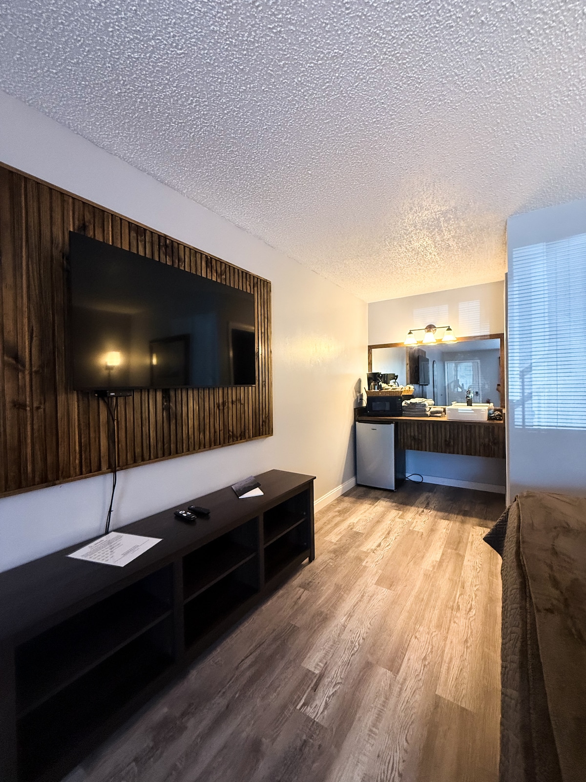 The grand suite consists of two beautifully outfitted bedrooms and a bathroom shared between them. You’ll have access to a mini-fridge, coffee maker, and breakfast nook for your convenience. Cable and wifi provided. Fun onsite pool and patio grilling area.