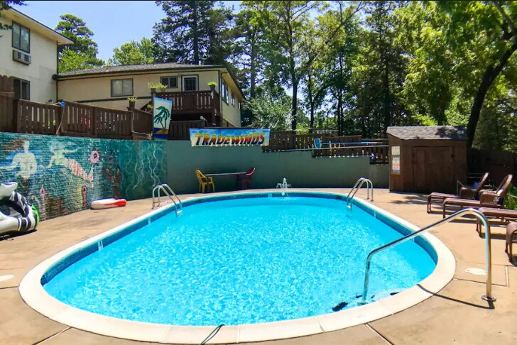 Deer Hollow is a separate studio cottage on property with queen bed and kitchenette and full bath. You’ll have access to a mini-fridge, coffee maker and microwave. Cable and wifi provided. Fun onsite pool and patio grilling area.ccess to popular shops and restaurants from this charming place to stay. Tradewinds is a charming boutique hotel with a fun pool and patio area, located right in the middle of town with easy access to shops and restaurants.