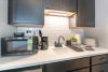 Escape to a charming Tudor-style cottage for your next nightly getaway, nestled just steps from the trolley stop near vibrant downtown Eureka Springs. This studio retreat welcomes you with a plush Dream Cloud king bed, perfect for unwinding after a day of exploration. The inviting space features a comfy chair and desk, a wood-burning fireplace to set the mood, and a 43-inch TV for your entertainment.