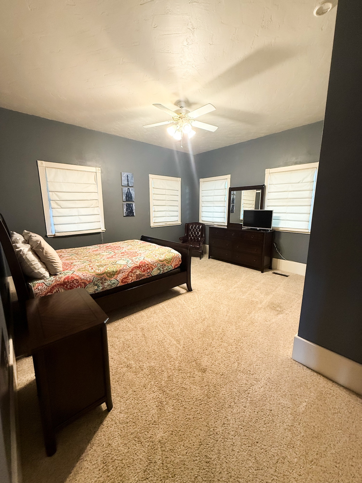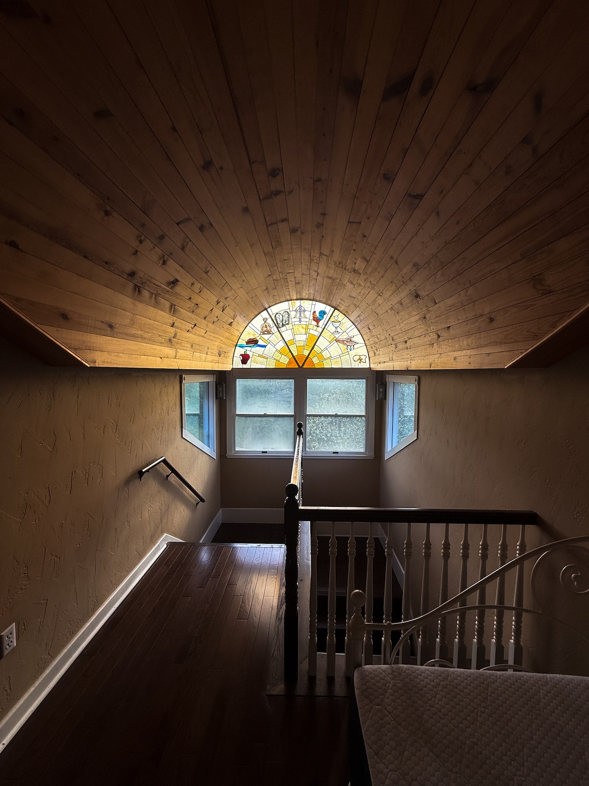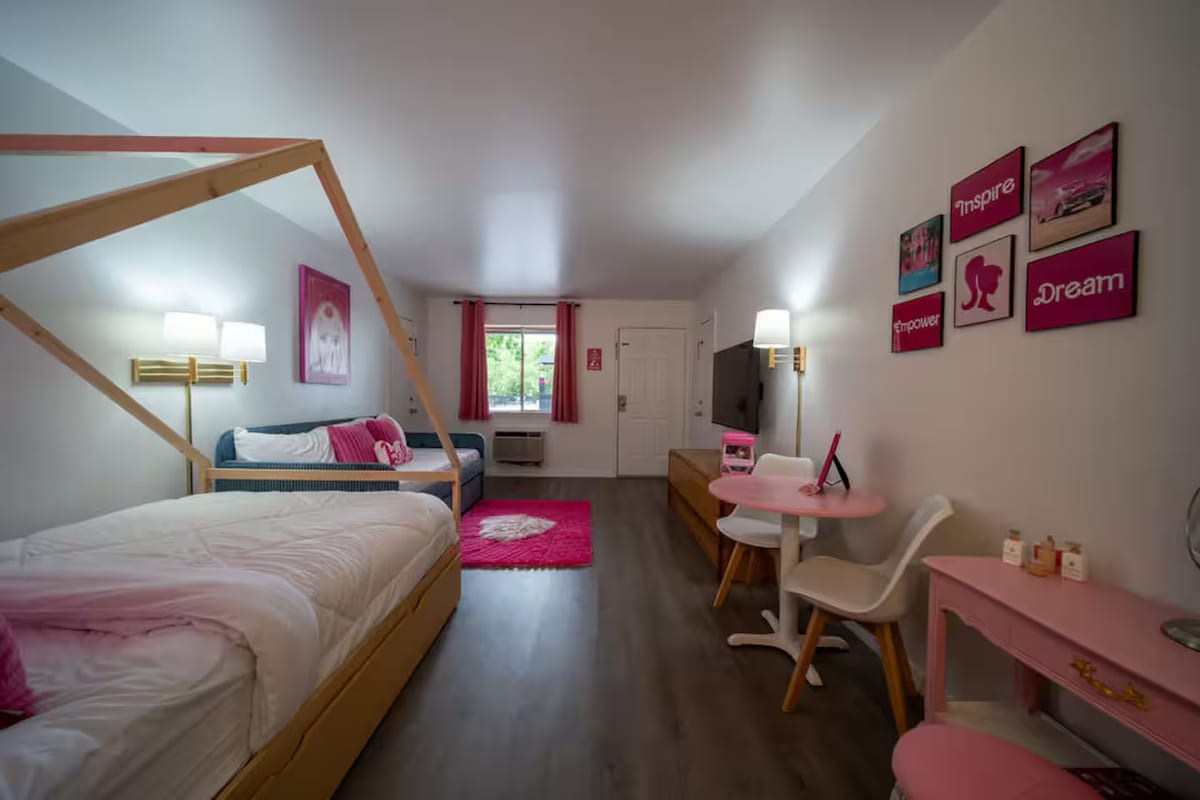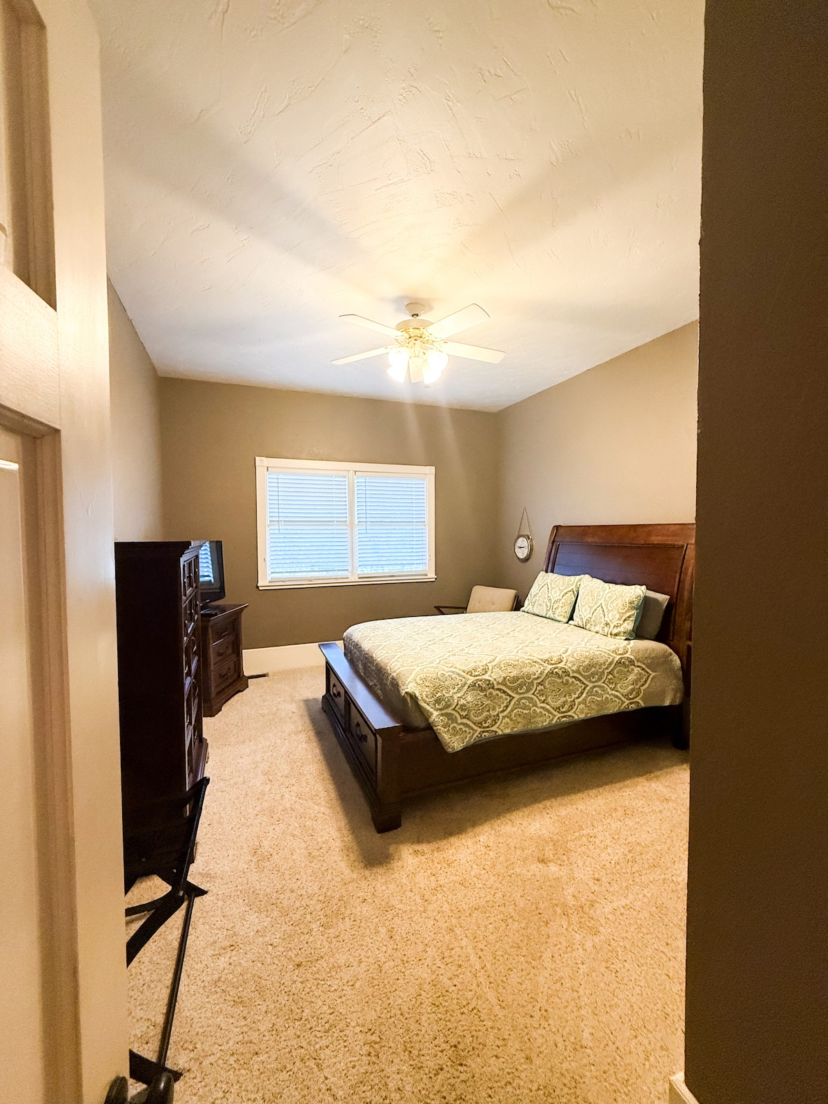 The cabin is situated at the front of the property, just 2 miles west of town on Highway 62, offering easy access yet a secluded feel. It's separate from yet connected to our main lodge, with a soundproofed, sealed room between them for privacy.