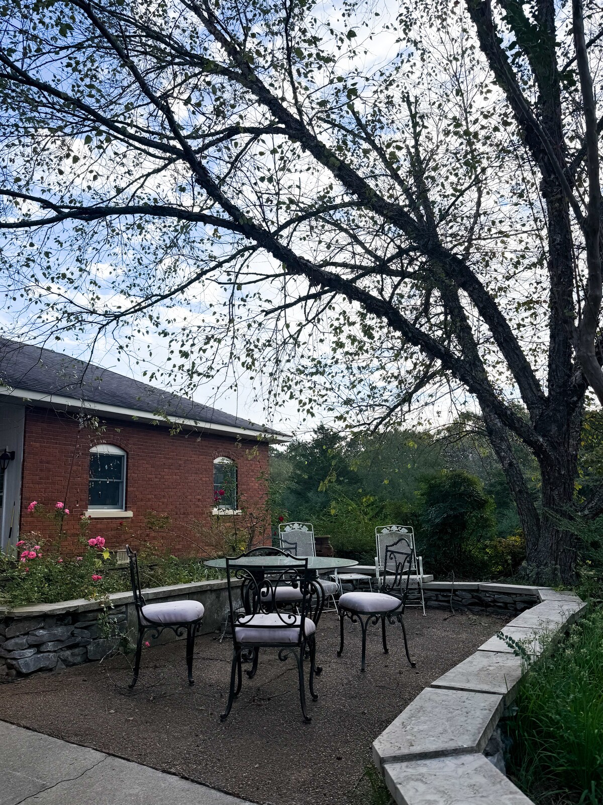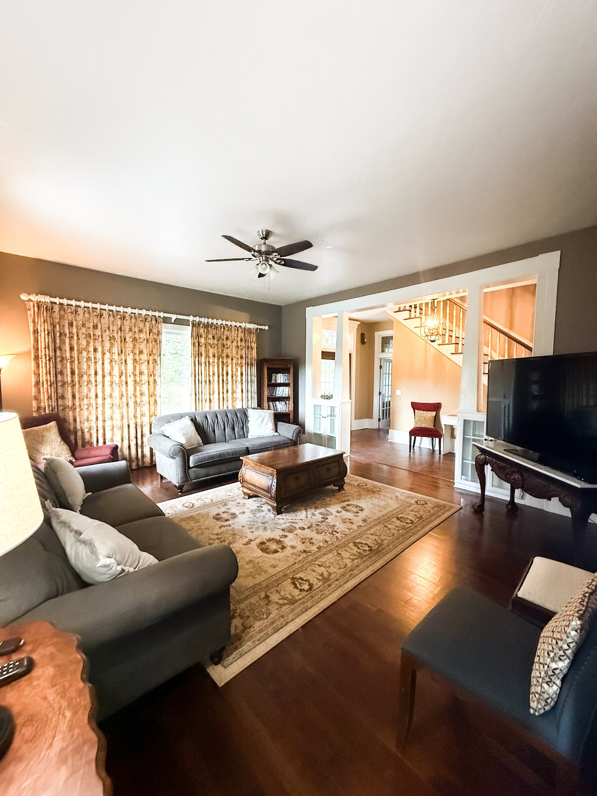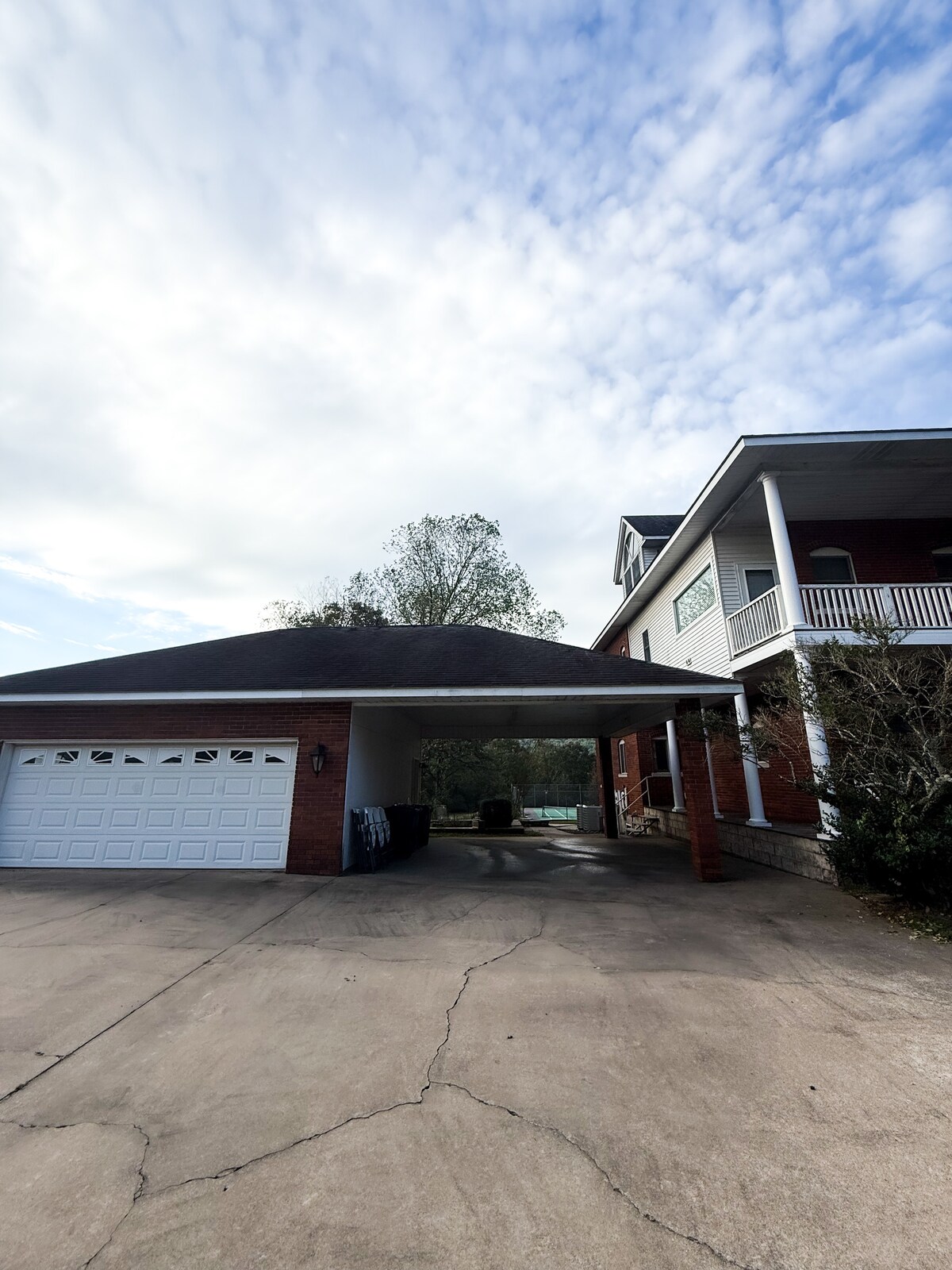 The whole house, driveway in front of the house and circular driveway in front of the house. There is a nightly rental cabin to the left of the house, the area in between the two is a neutral area that you may see each other coming and going. Please do not park in front of the cabin.