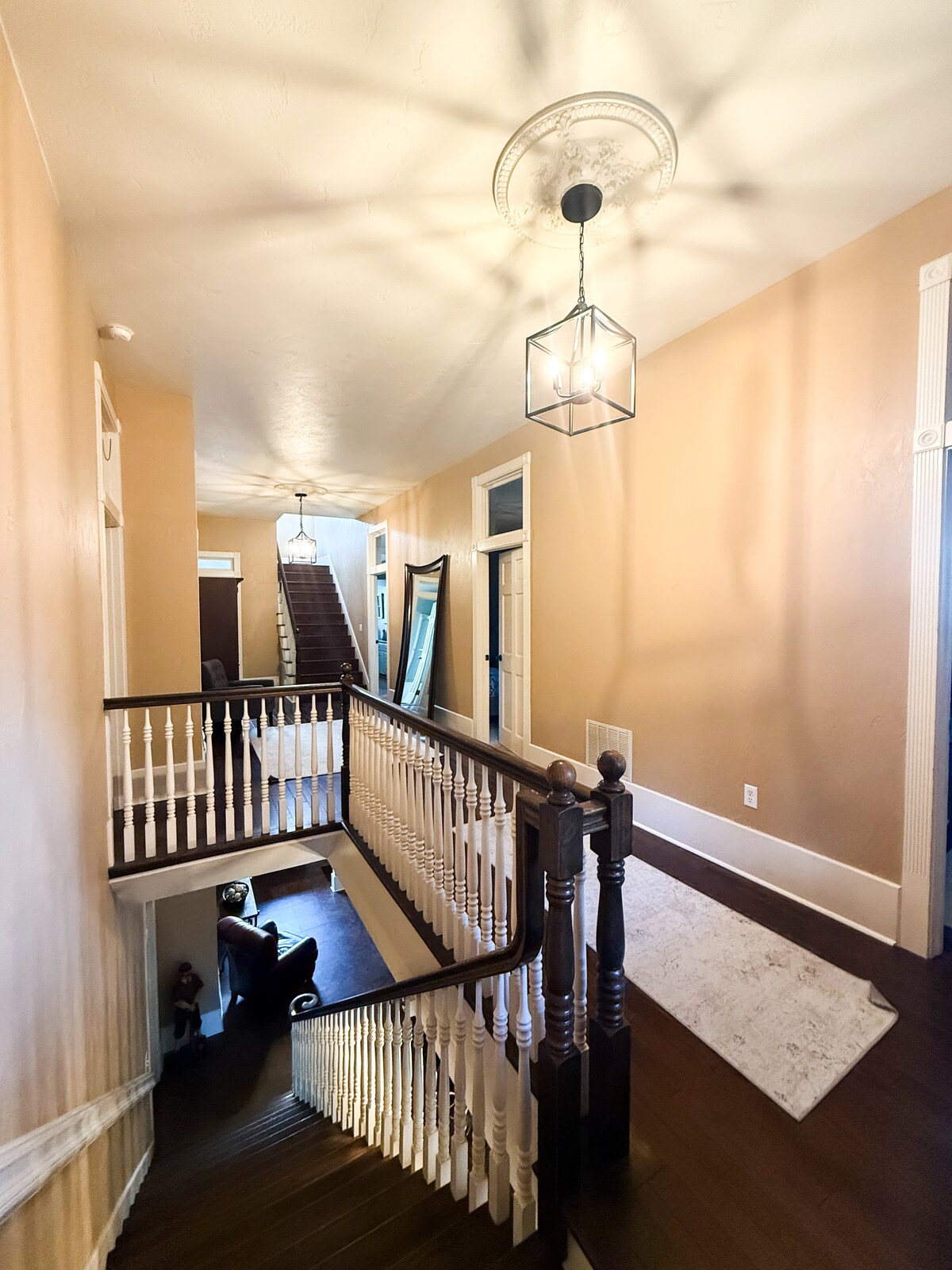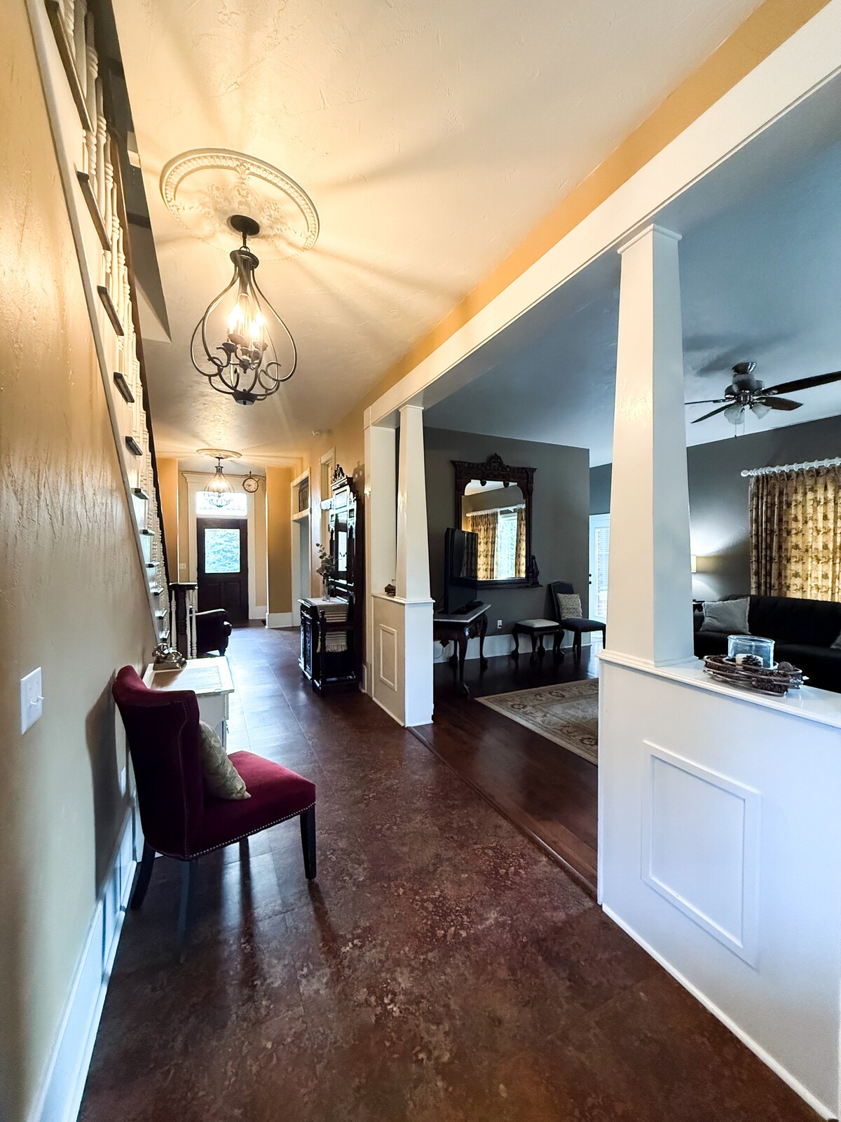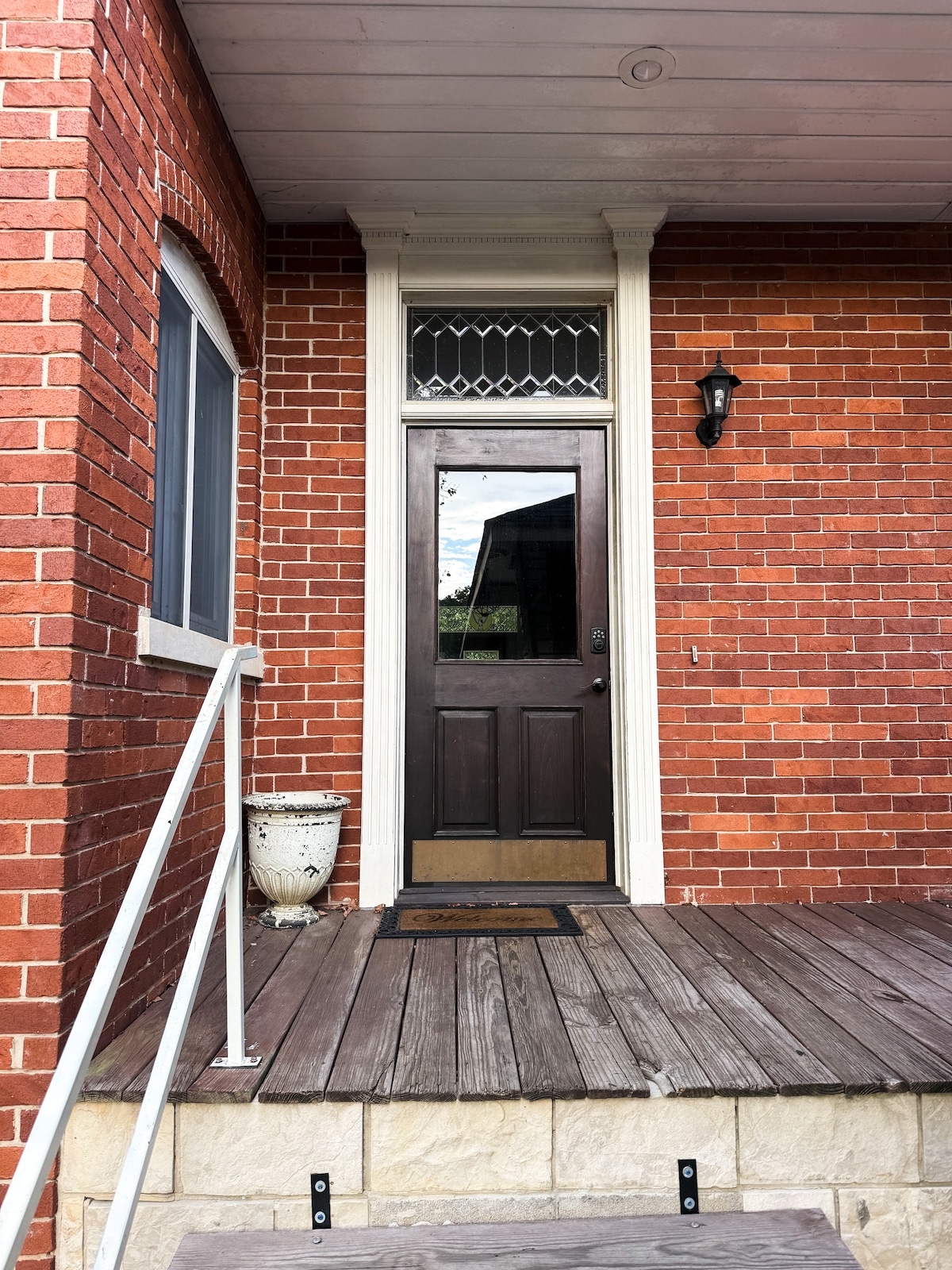 The whole house, driveway in front of the house and circular driveway in front of the house. There is a nightly rental cabin to the left of the house, the area in between the two is a neutral area that you may see each other coming and going. Please do not park in front of the cabin.