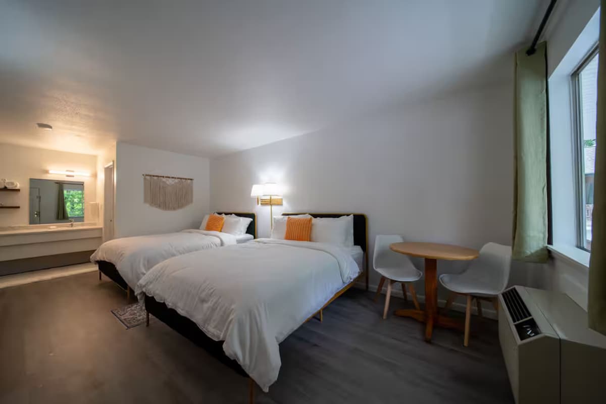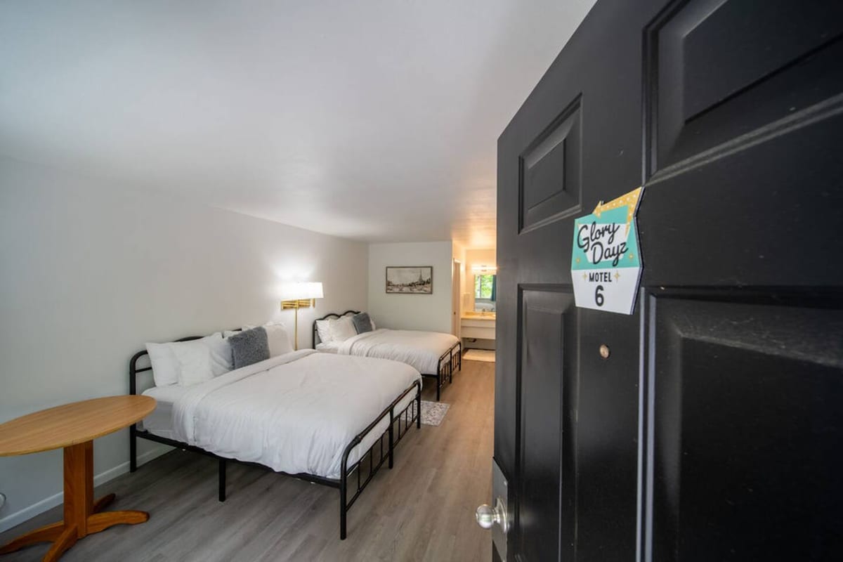 Enjoy the charm of our Queen Suite room #5 at GloryDayz!Featuring 2 comfortable queen size beds, this room provides a cozy and inviting atmosphere during your visit. Has small sitting area, A/C, microwave, small fridge, and 4 cup drip coffee maker (fresh roasted coffee).Room is on ground level.Self Check inNo PetsWalk to/from DowntownMaximum of 2 Vehicles per GuestAttendant onsite 10am-2pmQuiet Time is from 10:00pm - 7:00am