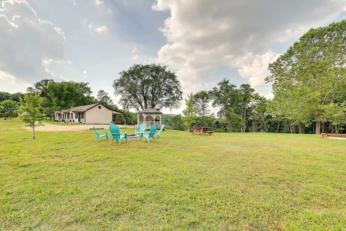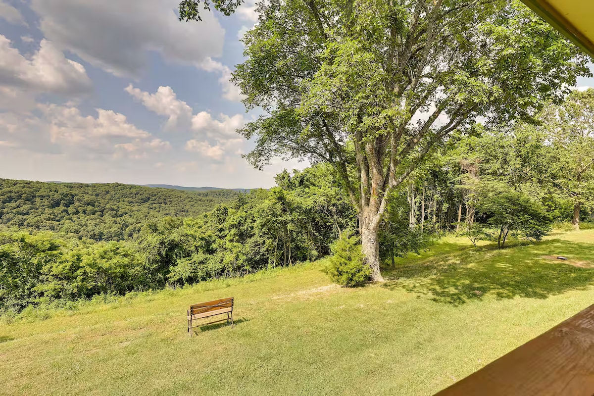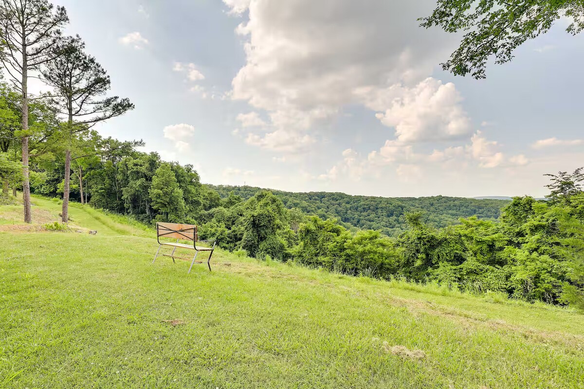 The cabin sits on 6 acres shared with four other cabins, offering ample space for walks. Enjoy the proximity to Lake Leatherwood, just 0.6 miles away, where you can access hiking and mountain biking trails. It's also a short 2-mile trip to Eureka Springs. Dog-friendly with a $50 fee per dog; additional dogs require approval, terms and conditions apply. Note: The driveway is steep, not ideal for low-profile vehicles.