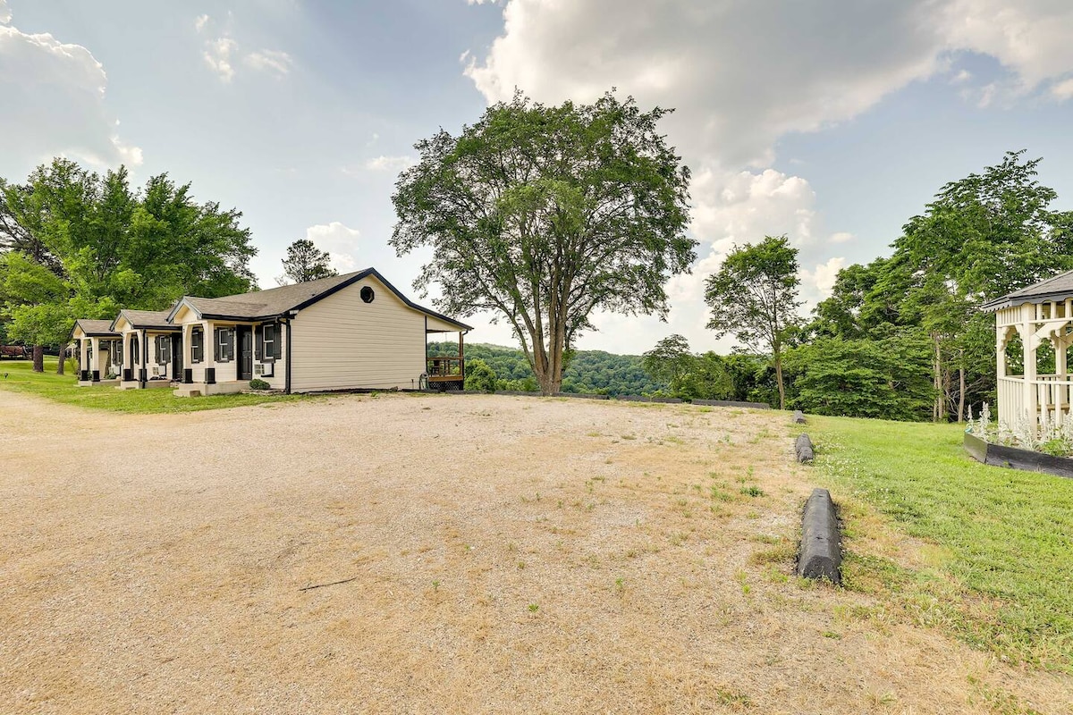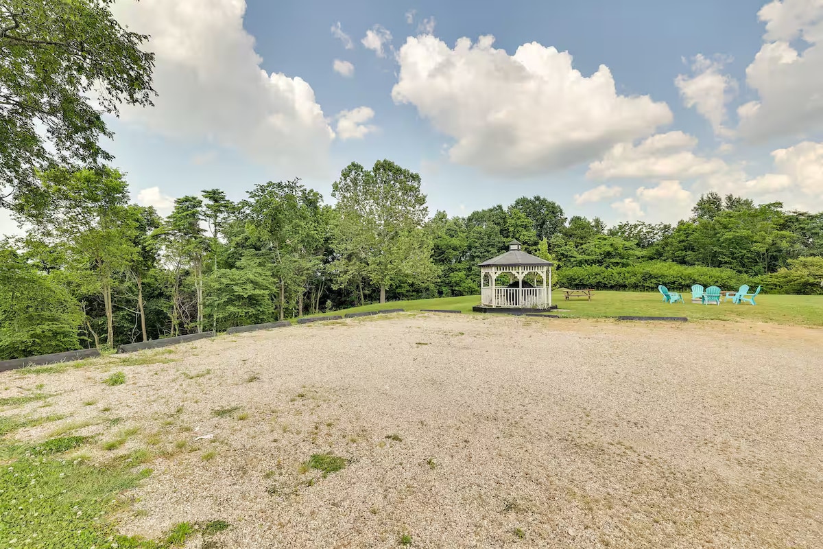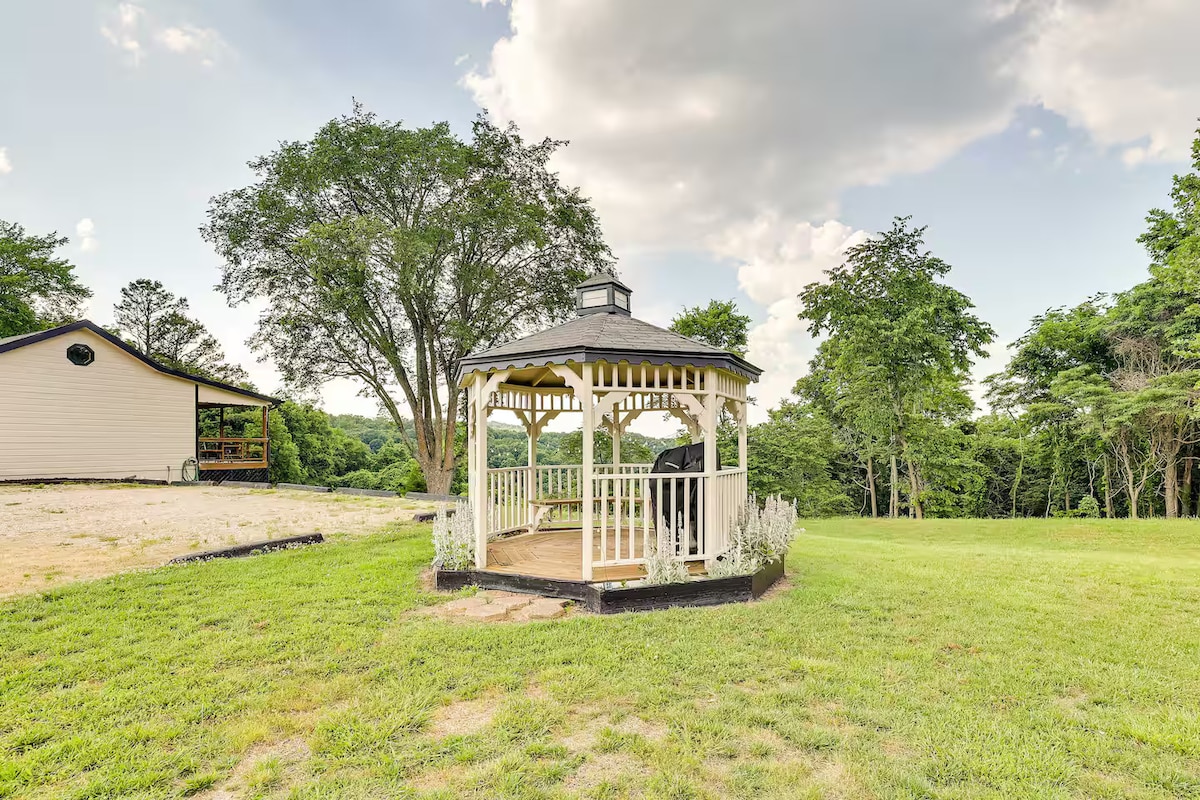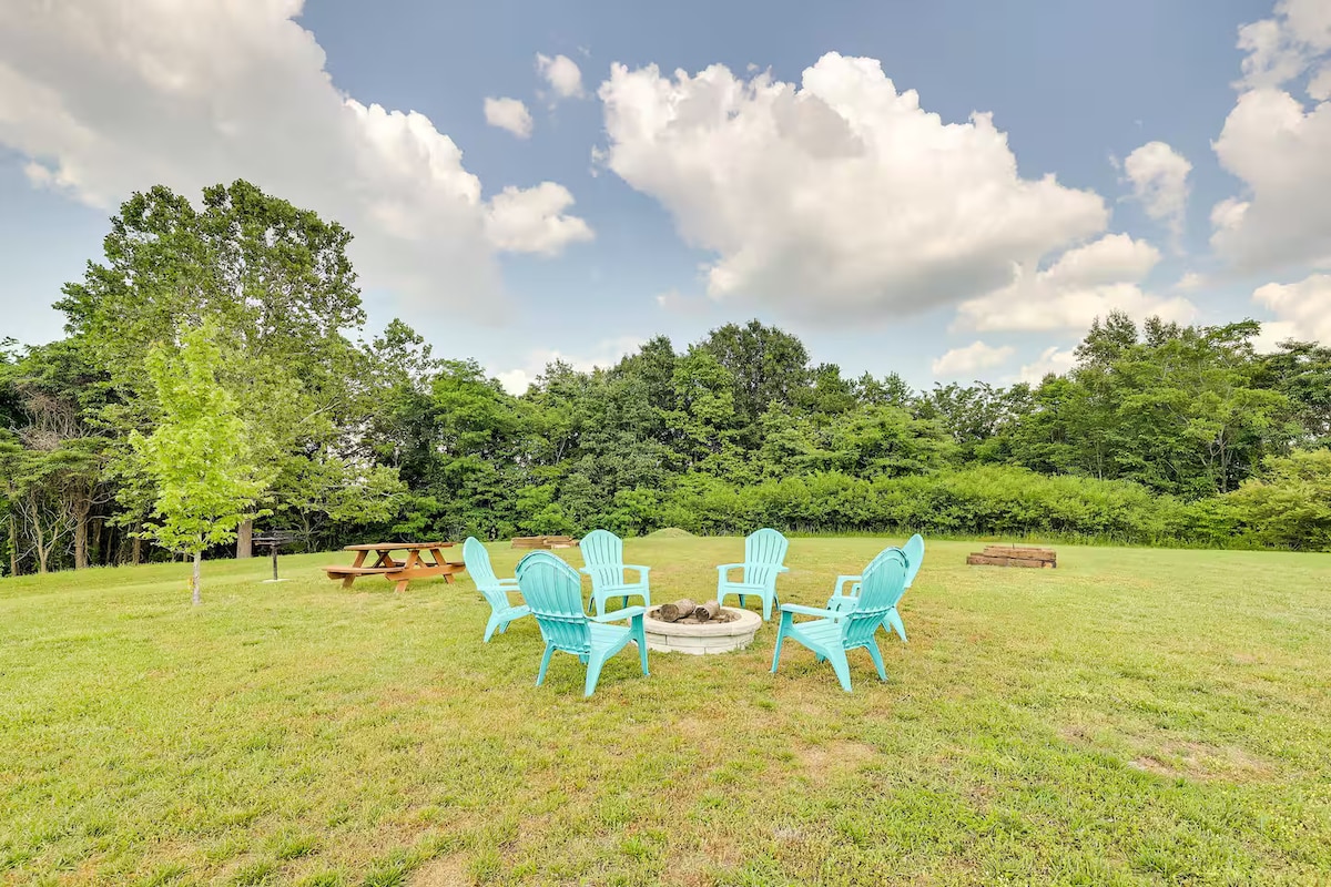 The cabin sits on 6 acres shared with four other cabins, offering ample space for walks. Enjoy the proximity to Lake Leatherwood, just 0.6 miles away, where you can access hiking and mountain biking trails. It's also a short 2-mile trip to Eureka Springs. Dog-friendly with a $50 fee per dog; additional dogs require approval, terms and conditions apply. Note: The driveway is steep, not ideal for low-profile vehicles.